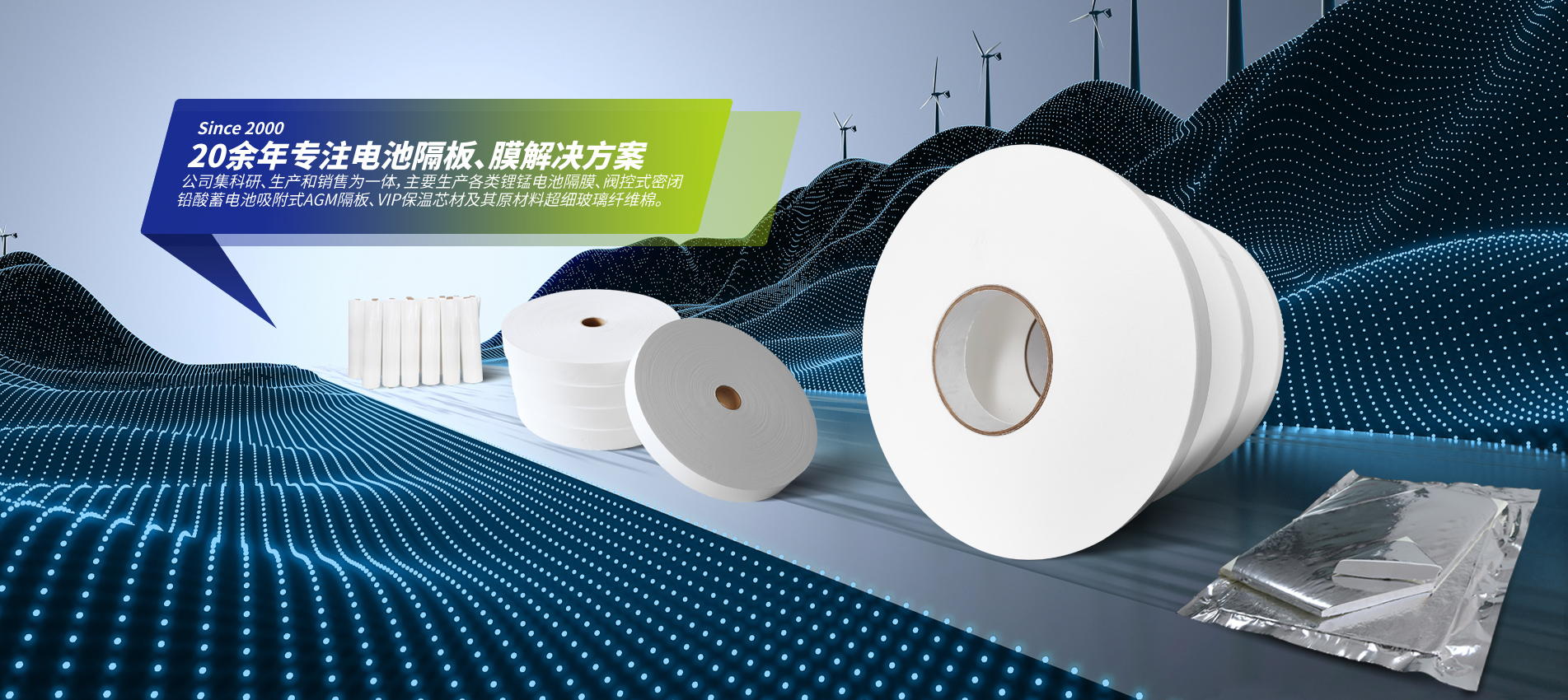 公司占地2.5萬(wàn)平方米,現(xiàn)有6條高精度隔板生產(chǎn)線(xiàn)適合生產(chǎn)各種類(lèi)型電池隔板。鋰錳電池隔膜、隔板與VIP芯材年產(chǎn)能達(dá)8000噸以上,已經(jīng)成為天能、超威集團(tuán)等國(guó)內(nèi)各大電池生產(chǎn)廠(chǎng)家的長(zhǎng)期供應(yīng)商,VIP芯材暢銷(xiāo)美日韓。